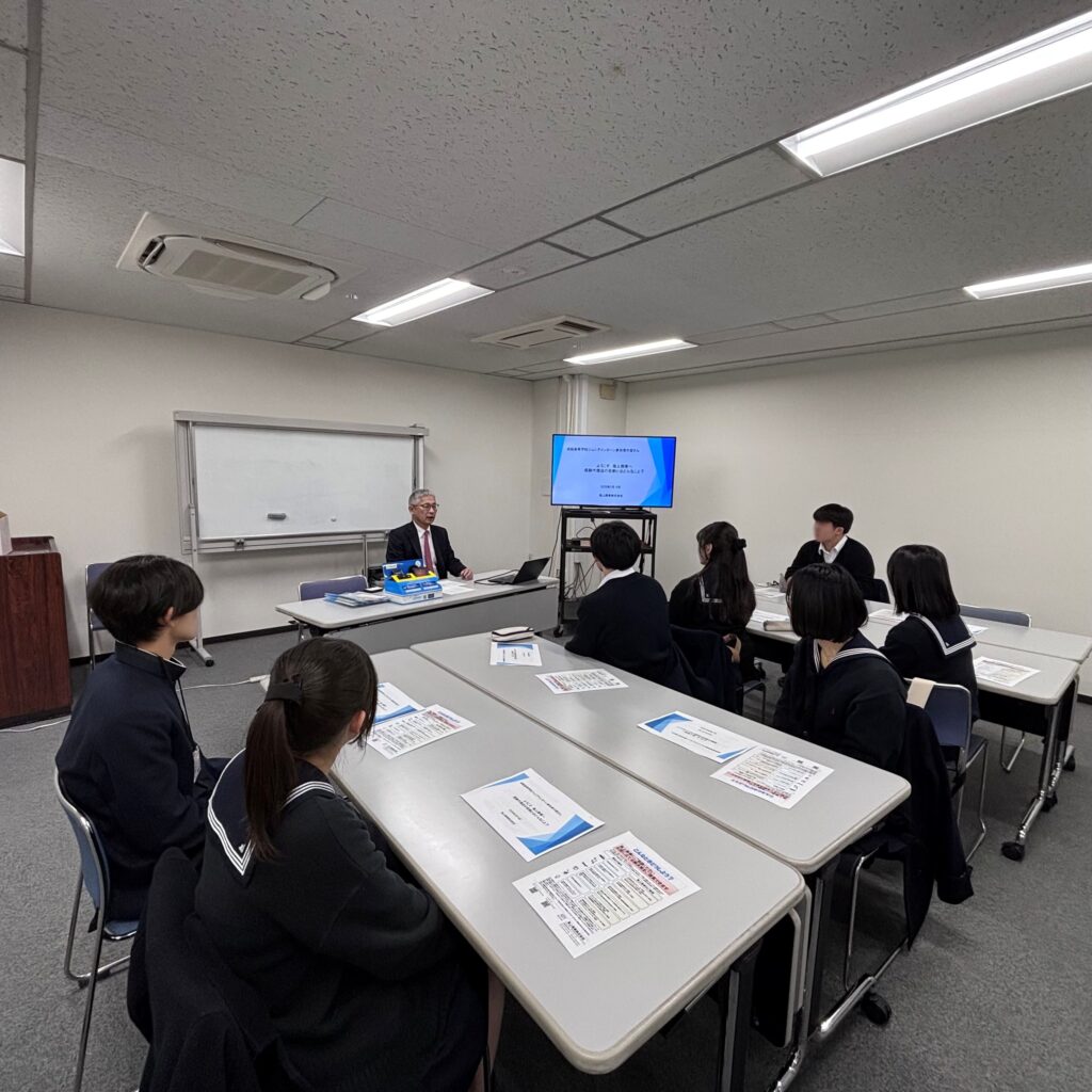 成蹊高等学校様 ジュニアインターンシップ開催 2026.03.23 お知らせ 去る2月19日に成蹊高等学校の高校生の皆さんを対象に「ジュニアインターン」として、「ようこそ海上商事へ保険代理店の役割とはどんなこと?」と題したセミナーを開催しました。 損害保険中心に「保険」の果たす役割について実例を踏まえて説明し、特に「保険代理店」の仕事を具体的に分かりやすく解説しました。 参加された7名の皆さんは熱心に講師(弊社代表)の話に耳を傾けて下さり、とても有意義なセミナーであったと喜んで頂けました。